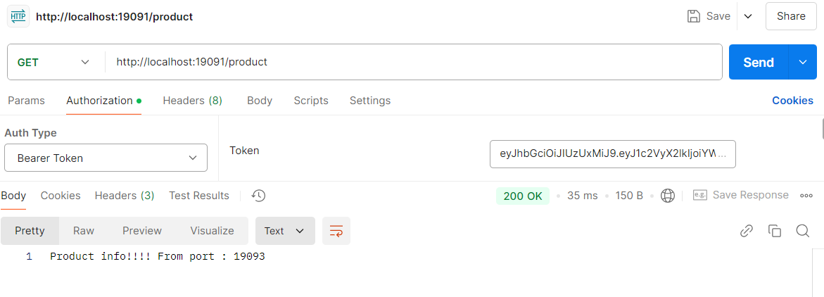세팅이 끝난 후 이제 게이트웨이 port인 19091에 인증을 요청하면 토큰이 생성되면서 로그인이 잘 되는 것을 볼 수 있다.