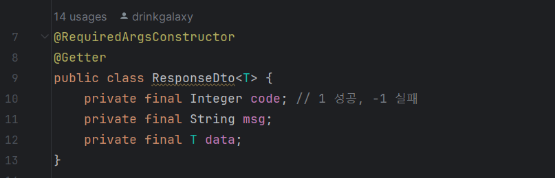 +) 참고로 핸들러 클래스에서 사용하는 ResponseDto 내부는 Dto 패키지 밑에 이렇게 설정해두었다.