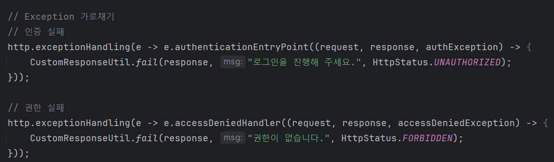 이를 응용하면 SecurityConfig에서 발생하는 Exception로 예쁘게 응답해줄 수 있다.