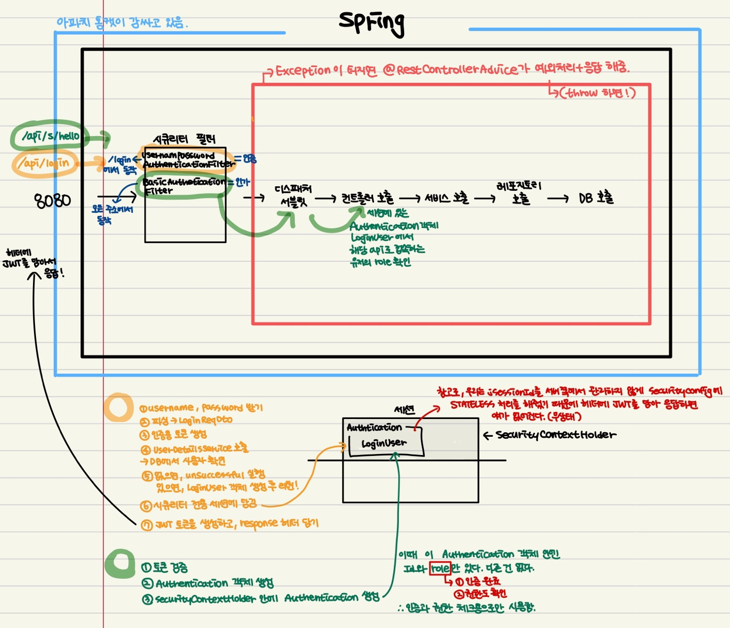 이제 인증 필터와 인가 필터를 구현해야한다. 전체적인 흐름을 그림으로 정리해보았다.